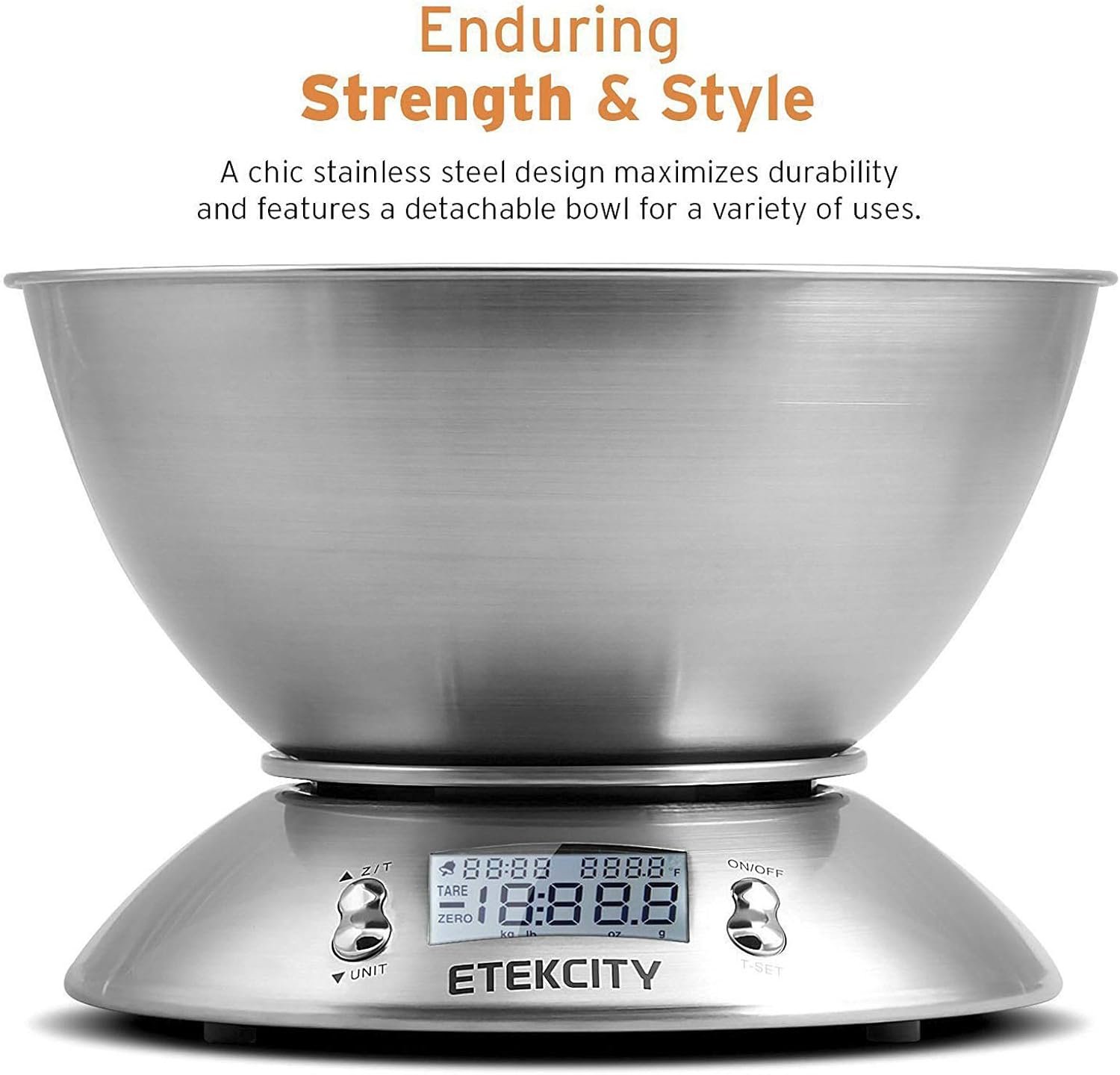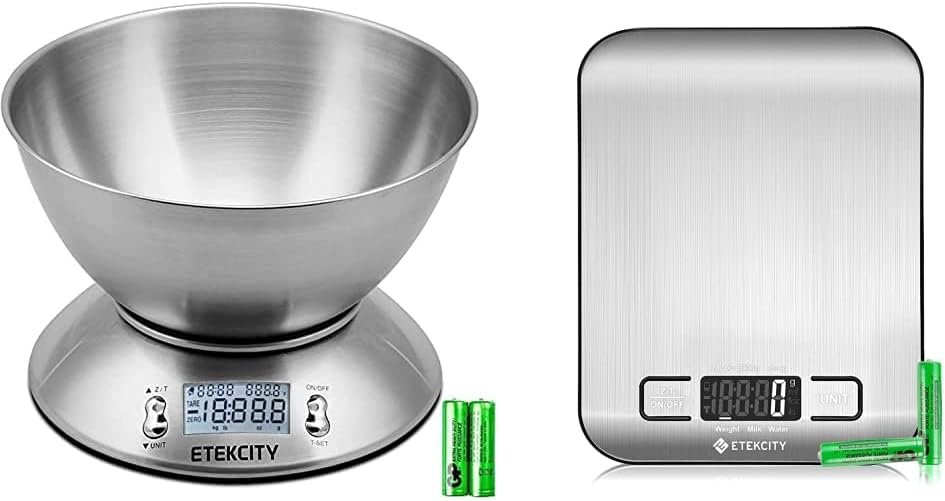 The Etekcity Stainless Steel Kitchen Scale delivers precise measurements and modern functionality for effortless cooking and baking. Featuring a detachable 2.06 QT bowl, high-precision sensors, and a sleek stainless-steel design, it ensures accuracy and convenience for every recipe. With its clear LCD display and easy tare function, this compact scale is perfect for home chefs and meal preppers—upgrade your kitchen with reliable precision today.